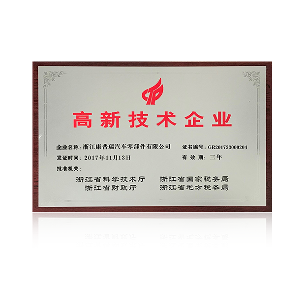 6、宏利汽配通過了國家高新技術(shù)企業(yè)首次認證;