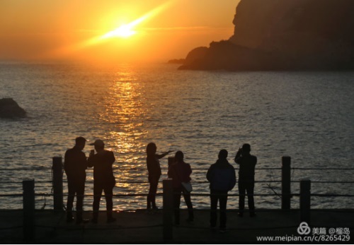 11月24日凌晨,大家揉著尚未瞳醒的雙眼,相約觀日出。太陽(yáng)初升海平面時(shí),火紅火紅的,照在波光磷磷的還海上,一遍金色,真是美極了。
