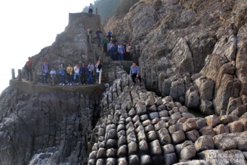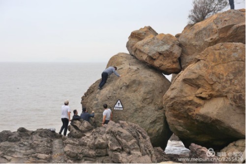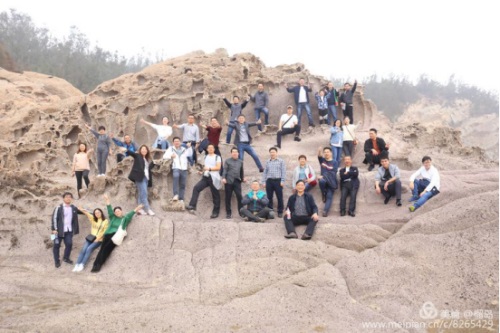 五百羅漢:因海水與巖崖不斷撞擊,歷盡無(wú)數(shù)歲月,海蝕成數(shù)十排獨(dú)立的崖石,仿佛是羅漢打座,面朝大海,呻吟著佛經(jīng),護(hù)佑蒼生,多么神奇的力量。董事長(zhǎng)李德進(jìn)笑坐羅漢群之上。