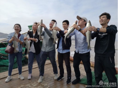 漁網(wǎng)出海水,漁民師傅將網(wǎng)中的魚兒清理中,有:金黃色的魚兒、螃蟹、蝦……剛撈到的魚蝦在漁民師傅的烹飪下,不一會(huì)兒就變成了香、甜、鮮的魚蝦宴了。豐收的喜悅,這一網(wǎng)將海上捕魚掀起了高潮,手捧大魚,來(lái)一個(gè)集團(tuán)照,笑容多么燦爛。