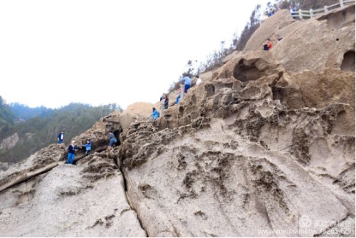 大家跟隨李董沿著石頭臺(tái)階趕著下一個(gè)景點(diǎn),猛聽項(xiàng)光躍主席站在崖頂?shù)暮奥暎蠹乙恢禄厥讜r(shí),被項(xiàng)主席抓拍的瞬間,一個(gè)個(gè)笑的多么開心。