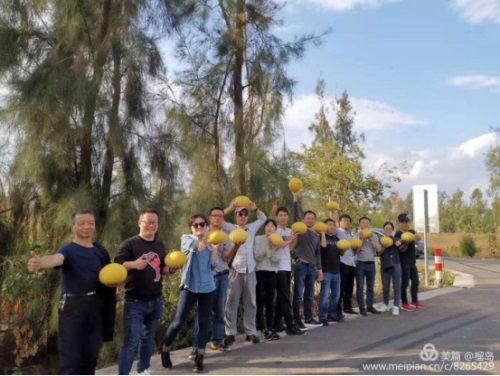 年輕人在一起就是好,永遠(yuǎn)不服輸,瞧,大家在比試誰(shuí)摘的文旦大且重。最后來(lái)一張手捧文旦大PK照。